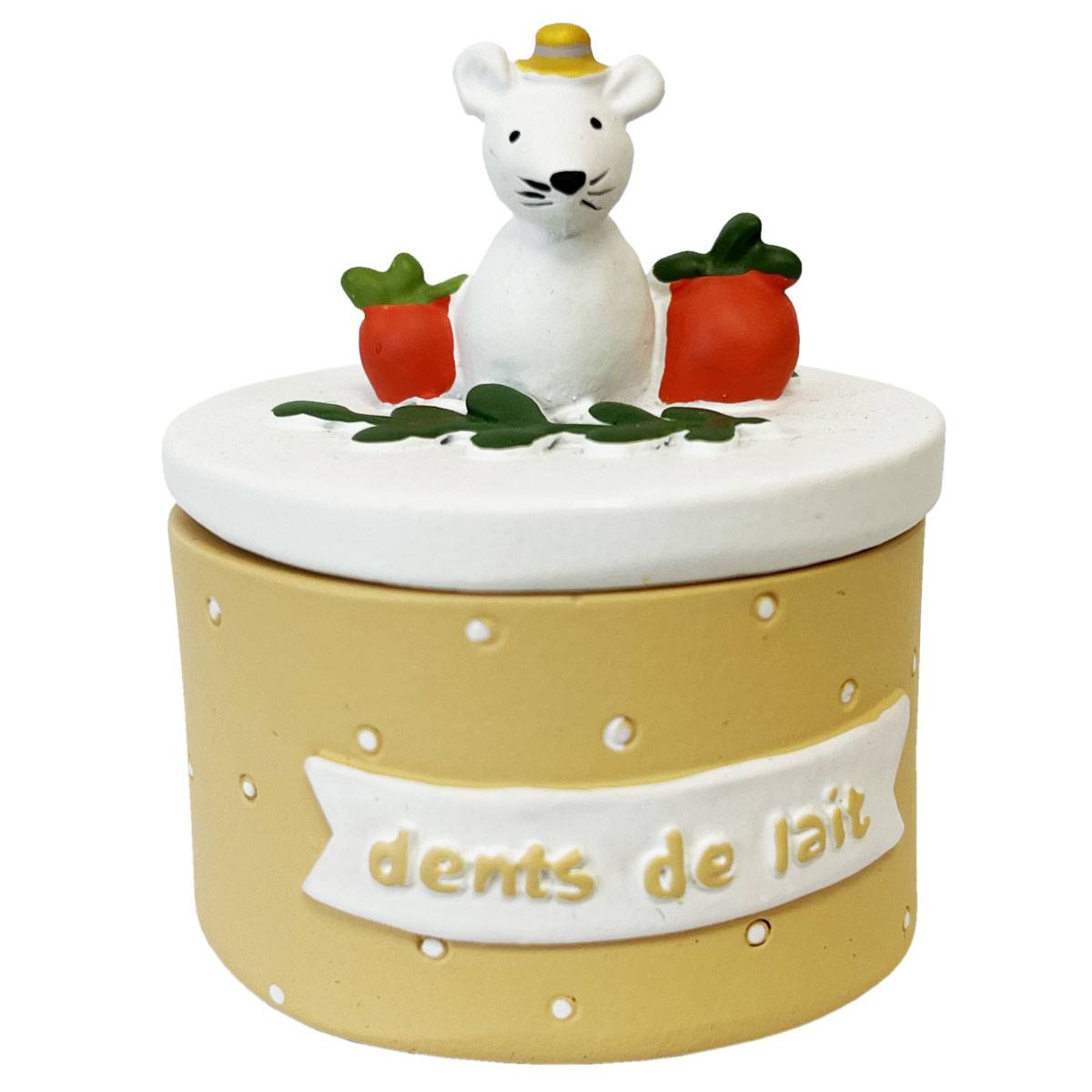 Boite à dents de lait Souris Gabrielle orange pâle Licence : Le Monde des Animaux La marque : Cades amadeus Couleur dominante : orange pâle Matière : Résine Dimensions : Hauteur 7 cm - Diamètre 5 cm