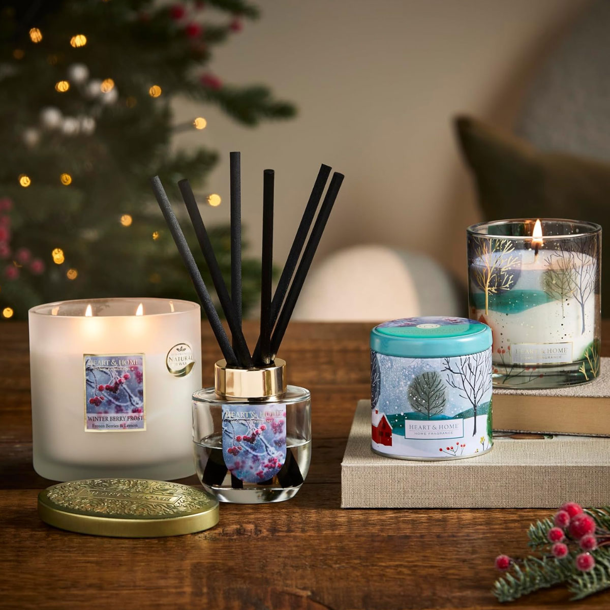 Bougie Heart and Home 40 heures - Baies d’Hiver La marque : Heart and Home Senteur : Baies d’Hiver Note de tête : Pomme, verveine Note de cœur : Aiguilles de pin, baies givrées Note de fond : Bouleau, musc Dimensions de la jarre : Hauteur 10 cm - Largeur 10 cm - Profondeur 7,5 cm Durée de combustion : Jusqu'à 40 heures Composition : Cire de soja naturelle - Mèches en coton - Jarre en verre avec couvercle en métal Poids : 220 g Laissez-vous envoûter par la Bougie 2 mèches Ellipse Baies d’Hiver, une fragrance qui capture l'essence même de la saison froide. Cette bougie réunit une palette olfactive riche et variée, où les notes de tête de pomme et de verveine apportent une fraîcheur pétillante, évoquant des instants réconfortants au coin du feu. Le cœur de la senteur se révèle avec des aiguilles de pin et des baies givrées, offrant un parfum boisé et fruité qui rappelle les forêts enneigées et les souvenirs de Noël. Pour finir, le fond de bouleau et de musc enveloppe l’ensemble d’une douceur chaleureuse et sensuelle, idéale pour créer une ambiance cocooning. Une atmosphère hivernale : Parfaite pour les soirées d’hiver, cette bougie parfumée Baies d’Hiver diffuse une senteur accueillante qui réchauffe votre intérieur et crée une ambiance conviviale. Que ce soit pour des moments de détente ou pour recevoir vos proches, elle s’adapte à toutes les occasions. Un design élégant : Avec son jarre en verre au couvercle métallique, cette bougie se fond harmonieusement dans votre décoration. Elle devient un véritable objet de décoration qui embellit votre espace tout en apportant une touche de magie festive. Durée de Combustion Étendue : Grâce à ses deux mèches en coton, la bougie Baies d’Hiver assure une combustion homogène et prolongée, vous permettant de profiter de ses arômes envoûtants jusqu'à 40 heures. Un cadeau idéal : Offrez cette bougie à un proche pour faire découvrir la magie des senteurs hivernales. Elle constitue un cadeau raffiné et chaleureux pour toutes les occasions. Transformez et Embellissez : Une fois la bougie consumée, la jarre en verre peut être réutilisée comme boîte de rangement décorative ou pour contenir de petits objets, ajoutant ainsi une touche fonctionnelle et esthétique à votre intérieur. Composition de Qualité : Fabriquée à partir de cire de soja écoresponsable, cette bougie garantit une combustion propre et saine. Les mèches en coton complètent cette conception pour une expérience olfactive de qualité. Heart and Home : L’art des parfums d’ambiance Heart and Home excelle dans l’art de capturer des senteurs uniques qui éveillent les sens et apportent une touche de magie à votre quotidien. Engagement environnemental : Heart and Home privilégie une production respectueuse de l’environnement grâce à l’utilisation de cire de soja écoresponsable, offrant ainsi des bougies qui garantissent une combustion propre et réduisent leur impact écologique.