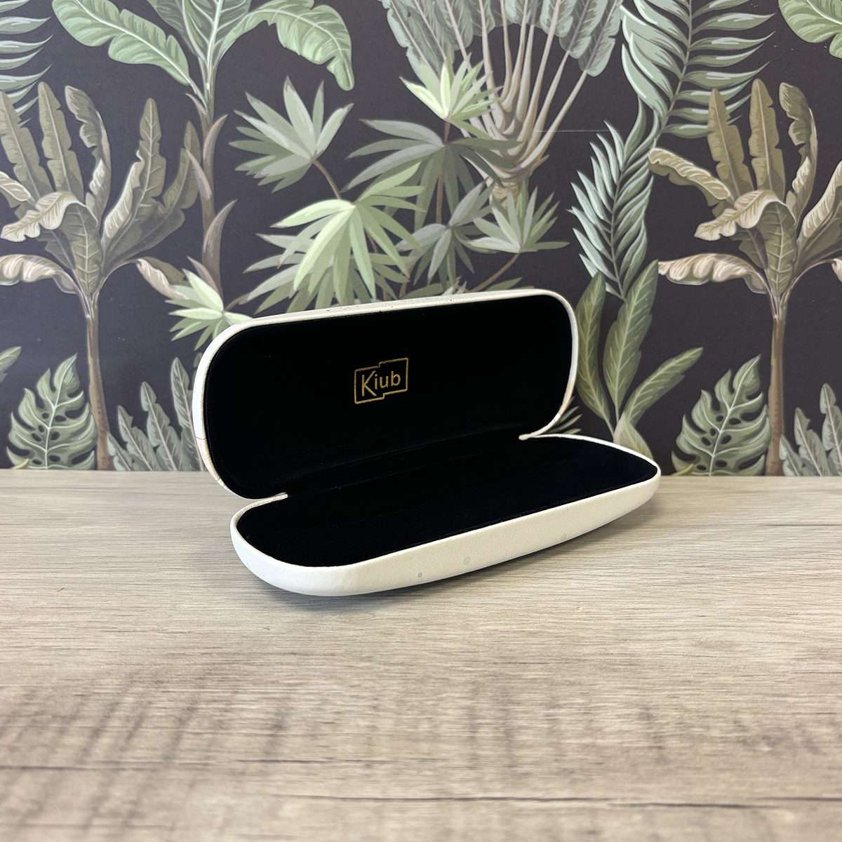 Étui à lunettes Kiub - Chaton sur un arrosoir Marque : Kiub Couleur dominante : Beige Matière : extérieur polyuréthane et intérieur suédé Dimensions : Longueur 16.3 cm x largeur 6 cm x Hauteur 4 cm