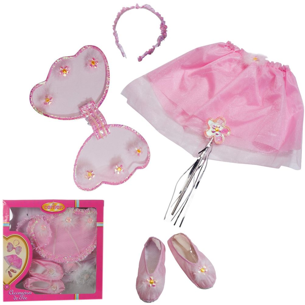 Panoplie 5 accessoires Fée Morganite pour fillettes de 3 à 6 ans Couleur dominante : rose Âge : 3 - 6 ans Cette panoplie comprend des ailes, des chaussons, un serre-tête, une baguette de fée et une jupette. Dimensions : baguette de 32 cm, ailes de 35 cm, chaussons de 15.5 cm Lavable à la main à 30°, ne pas mettre au sèche-linge. Ne convient pas à un enfant de moins de 3 ans. Spécificités : Cette panoplie est l'accessoire indispensable pour entrer dans le monde magique des fées, et inventer des aventures dignes des Contes de fée. Article répondant aux normes C-E et sous Licence Officielle
