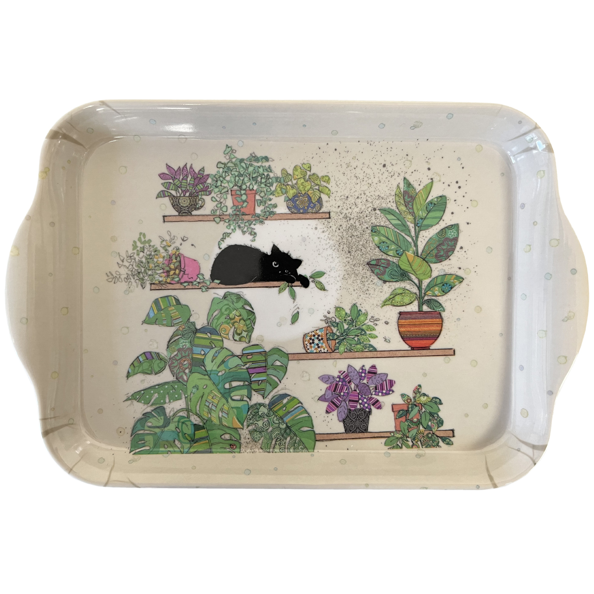 Petit plateau chaton et plantes en mélamine 20.8 cm Marque : Kiub Collection : Bug Art Couleurs dominantes : Beige Matière : en mélamine Dimensions totales : 20.8 x 14 cm
