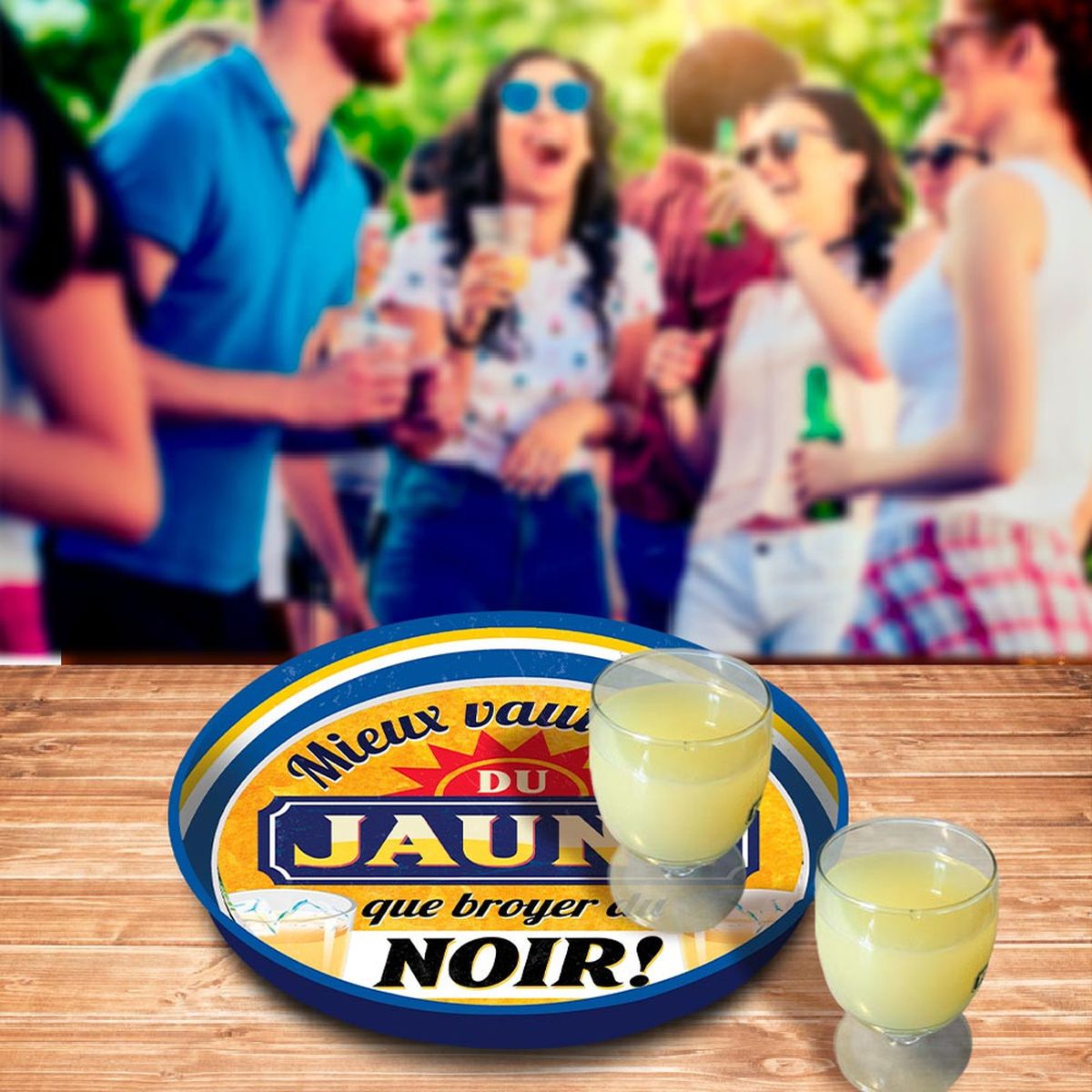 Plateau Mieux vaut boire du Jaune - rond en métal 33 cm Licence : Rétro Couleur dominante : Jaune Matière : Métal Dimensions : 33 cm Spécificités : Retrouvez dans cette collection, le charme et l’authenticité du passé tout en mettant du peps et de la bonne humeur dans votre intérieur. Charlotte Boutik vous propose des accessoires déco, design, originaux ou insolites. Découvrez les dernières tendances femme et homme et trouvez le petit cadeau idéal. Que vous recherchiez l’accessoire utile, déco ou rigolo pour égayer le quotidien, nous proposons tout une gamme d’objets fun et insolites ! Article répondant aux normes C-E et sous Licence Officielle