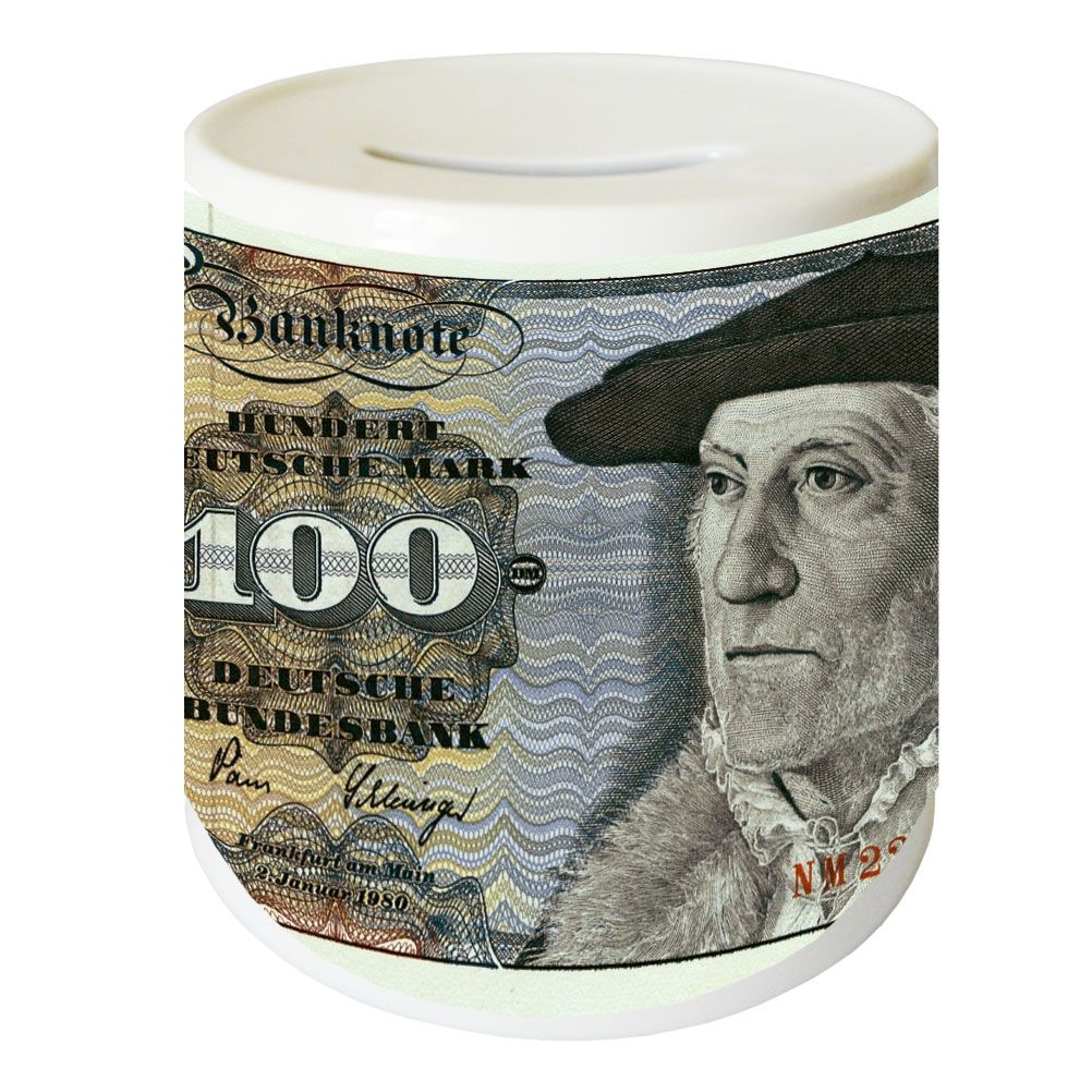 Tirelire Monnaie du monde, le Deutsche mark Allemand by CBK Licence : CBK Couleur dominante : Blanc Forme : cylindrique Matière : en céramique Spécificités : Création CBK Petite entreprise familiale, créée en mai 2005 et implantée dans le sud de France, Charlotte Boutik propose une gamme d'articles sous licence mais également ces propres fabrications " MADE IN FRANCE" et artisanales. Dimensions en centimètres : 9 x 7.5 cm Livrée vide Article répondant aux normes C-E et sous Licence Officielle