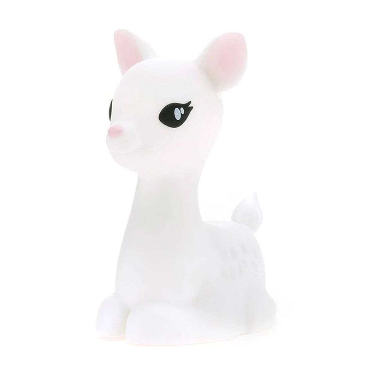 Veilleuse Biche LED variation de couleurs 16 cm Collection : Le Monde des Animaux La marque : Dhink Couleur dominante : Blanc Matière : Pvc Sans phtalate Lumière multicolore par défilement à LED Plusieurs fonctions - 50% blanc - 100% blanc + rouge, jaune, vert, bleu, changement de couleur - mise en marche par interrupteur électronique + changement de mode de couleur par tapotement Mode normal et Mode minuterie : s'éteint au bout de 15 minutes Interrupteur ON/OFF sous la lampe Dimensions : Hauteur 16.5 cm - Largeur 9 cm - Profondeur 12 cm Alimentation : Batterie rechargeable 600mAh - avec câble USB 2 mètres